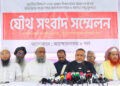 সমাবশে পরিচালনা করছেন বিএনপির যুগ্ম-মহাসচিব রুহুল কবির রিজভী, বিরোধীদলীয় চিফ হুইপ জয়নুল আবেদীন ফারুক, মহানগর বিএনপির সদস্য সচিব আব্দুস সালাম।