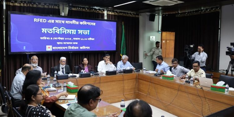 বৃহস্পতিবার সকালে রাজধানীর আগারগাঁওয়ে নির্বাচন ভবনের সম্মেলন কক্ষে নির্বাচন কমিশন ও সাংবাদিকদের সংগঠন রিপোর্টার্স ফোরাম ফর ইলেকশন অ্যান্ড ডেমোক্রেসি (আরএফইডি) এর সদস্যদের মধ্যে গুরুত্বপূর্ণ মতবিনিময় সভায় এসব কথা বলেন কমিশনের সদস্যরা।