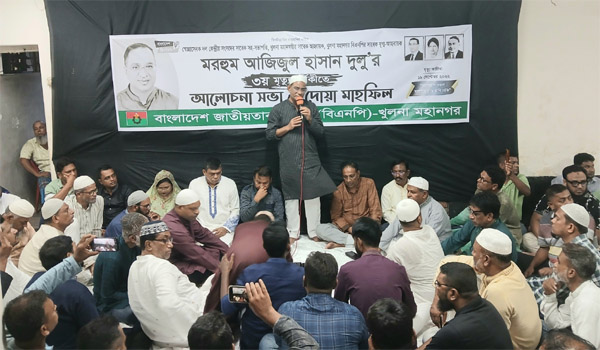 শুক্রবার বিকেল ৫টায় দলীয় কার্যালয়ে মহানগর বিএনপি’র সাবেক যুগ্ম-আহবায়ক প্রয়াত আজিজুল হাসান দুলুর তৃতীয় মৃত্যুবার্ষিকী উপলক্ষে আয়োজিত দোয়া মাহফিল ও স্মরণসভায় এসব কথা বলেন তিনি। অনুষ্ঠানে উপস্থিত ছিলেন নগর বিএনপি’র সাবেক যুগ্ম-আহবায়ক সৈয়দ রেহেনা ঈসা, সাংগঠনিক সম্পাদক মাসুদ পারভেজ বাবু, বিএনপি নেতা কে এম হুমায়ুন কবির, হাফিজুর রহমান মনি, একরামুল হক হেলাল, আসাদুজ্জামান আসাদ, আব্দুল আজীজ সুমন, মুজিবর রহমান, জাকির ইকবাল বাপ্পী, মো. নাসির উদ্দিন, শফিকুল ইসলাম শফি, আজিজা খানম এলিজা, মুনতাসির আল মামুন, মশিউর রহমান নান্নু, আবু সাঈদ শেখ, জাহাঙ্গীর হোসেন, মো. নুরুল ইসলাম, মাস্টার রফিকুল ইসলাম, মঈনুল ইসলাম কিরন, ডাঃ ফারুক হোসেন, মিলন হোসেন, আজাদ হোসেন, সৈয়দ ইমরান, হabul্বুর রহমান হাবিব, জিয়াউর রহমান আপন ও আমিন হোসেনসহ আরও অনেকে। আলোচনা শেষে প্রয়াত নেতার রূহের মাগফিরাত কামনায় বিশেষ দোয়া মাহফিল অনুষ্ঠিত হয়।