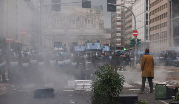 মিলানের কেন্দ্রীয় রেলস্টেশনের কাছে গাজায় যুদ্ধবিরতি দাবিতে বিক্ষোভকারীরা মার্কিন পতাকা পুড়ালে পরিস্থিতি উত্তপ্ত হয়ে ওঠে। একটি কালো পোশাকধারী দল পুলিশের দিকে পাথর, ধোঁয়া বোমা ও লোহার রড ছুঁড়লে সংঘর্ষের সৃষ্টি হয়। বোলোনিয়ায় প্রধান রিং রোডে অবরোধ করা হয়। পুলিশ জলকামান ও টিয়ার গ্যাস ছোঁড়ে বিক্ষোভকারীদের ছত্রভঙ্গ করার জন্য। মিলানের মেয়র জিউসেপ্পে সালা বলেন, এই ভাঙচুর কোনোভাবেই গাজা-সংক্রান্ত স্বাধীনতা আন্দোলনের সঙ্গে সম্পর্কিত নয়। প্রধানমন্ত্রী মেলোনি জানান, এই ধরনের সহিংসতা ও ধ্বংসযজ্ঞের সঙ্গে কোনও সম্পর্ক নেই। তার মতে, এসব ঘটনা গাজার মানুষের পরিস্থিতি পরিবর্তন করবে না, বরং এটি ইতালির নাগরিকদের জন্য ক্ষতি ডেকে আনবে।