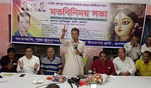 বিএনপি’র জাতীয় নির্বাহী কমিটির তথ্য বিষয়ক সম্পাদক আজিজুল বারী হেলাল বলেছেন, দেশের সামজিক সম্প্রীতি ও শান্তিপূর্ণ পরিবেশ বজায় রাখতে দুর্গোৎসবের সময় কোন অপ্রীতিকর ঘটনা ঘটলে কঠোর পদক্ষেপ নেওয়া হবে। তিনি বলেন, শারদীয় দুর্গোৎসব কেবল ধর্মীয় আচার-অনুষ্ঠানে সীমাবদ্ধ নয়, এটি সমাজে ঐক্য ও সম্প্রীতির এক অন্যতম পর্যায়। অসত্যের বিরুদ্ধে সত্যের জয় প্রতিষ্ঠার মূলনীতিকে সামনে রেখে সবাইকে শান্তিপূর্ণ পরিবেশে উৎসব উদযাপন করার আহ্বান জানান হেলাল। দুর্গোৎসব আমাদের সাংস্কৃতিক ঐতিহ্য ও গুরুতর অবদান, তাই সবাইকে গ্রহণযোগ্য ভাষায় শুভেচ্ছা জানিয়ে পারস্পরিক শুভেচ্ছা বিনিময় ও মিলনমেলা সম্পন্ন করতে উৎসাহিত করেন। তিনি প্রশাসনের ভূমিকা আরও জোরদার করার ওপর গুরুত্ব দিয়ে বলেন, কোনো অপ্রীতিকর ঘটনা ঘটলে আইনশৃঙ্খলা রক্ষা বাহিনী কঠোর পদক্ষেপ নিতে বাধ্য। রাজনীতি থেকে সুস্পষ্টভাবে দূরে থেকে, রাজনৈতিক কর্মীদের উচিত নয় হাতের অস্ত্র বা আইন হাতে তুলে নেওয়া; বরং তারা প্রশাসনের পাশে থাকতে হবে। গত বৃহস্পতিবার বিকেল সাড়ে ৪টায় রূপসা উপজেলার কাজদিয়া বিআরডিবি মিলনায়তনে পূজা উদযাপন পরিষদ ও পূজা উদযাপন ফ্রন্টের আয়োজিত মতবিনিময় সভায় তিনি এ কথা বলেন।