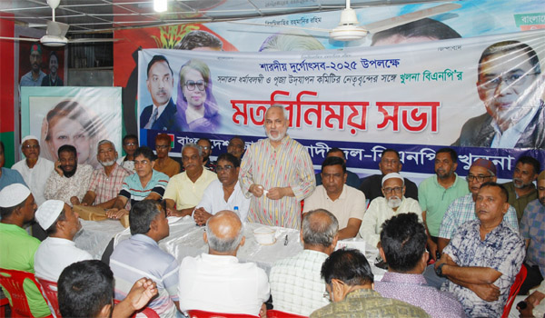খুলনা-২ আসনের সংসদ সদস্য ও খুলনা মহানগর বিএনপি’র সাবেক সভাপতি নজরুল ইসলাম মঞ্জু বুধবার সন্ধ্যা সাড়ে ৭টায় নগরীর সোনাডাঙ্গা থানা বিএনপি কার্যালয়ে শারদীয় দুর্গোৎসবের সার্বিক সহযোগিতা নিয়ে অনুষ্ঠিত মতবিনিময় সভায় এসব কথা বলেন। তিনি বলেন, আসন্ন শারদীয় দুর্গাপূজা যথাযথভাবে উদযাপন করতে হিন্দু সম্প্রদায়ের পাশে থাকবে বিএনপি। যেন কোনও ধরনের অপ্রীতিকর ঘটনা না হয় সে জন্য সবাই সতর্ক থাকবেন। বিশেষ করে, পতিত স্বৈরাচারের অনুচররা যেন কোনও অপ্রীতিকর কাজ করতে না পারে, সেজন্য সারাদেশে নেতারা নজরদারিতে থাকবেন।