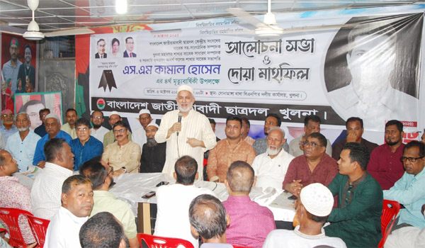 তিনি এই কথা বলেন শুক্রবার বিকেল সাড়ে ৪টায় নগরীর কেডিএ এভিনিউস্থ তেতুলতলা, সোনাডাঙ্গা থানার বিএনপি কার্যালয়ে, ছাত্রদল খুলনার আয়োজনে এক আলোচনা সভায়। এই অনুষ্ঠানে উপলক্ষ্য ছিল মহান নেতা এস এম কামাল হোসেনের চতুর্থ মৃত্যুবার্ষিকী। প্রধান অতিথি হিসেবে বক্তৃতা করেন নজরুল ইসলাম মঞ্জু। তিনি আরও বলেন, বারবার কারাবরণ ও নির্যাতনের মুখে থাকা কামাল ফ্যাসিস্ট শেখ হাসিনা সরকারের শতাধিক মামলার কেস কাঁধে নিয়ে মৃত্যু বরণ করেন। আমরা সবাই কামালের বিদেহী আত্মার জন্য কামনা করি শান্তি ও বরকত, আর তার পরিবারের জন্য ধৈর্য্য ধরে সব পরিস্থিতি মোকাবেলার তৌফিক আল্লাহ থেকে প্রার্থনা করি। দোয়া পরিচালনা করেন মাওলানা আব্দুল গফ্ফার।