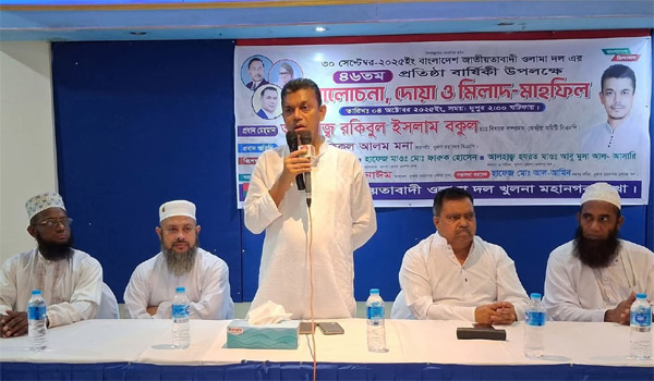 সভায় সভাপতিত্ব করেন খুলনা মহানগর ওলামা দলের আহ্বায়ক মাওলানা কাজী আবু নাঈম। এ সময় বিশেষ অতিথি ছিলেন খুলনা মহানগর বিএনপি’র সভাপতি এডভোকেট এস এম শফিকুল আলম মনা ও সাধারণ সম্পাদক শফিকুল আলম তুহিন। উপস্থিত ছিলেন জেলা ওলামা দলের আহ্বায়ক মাওলানা ফারুক হোসেন, সদস্য সচিব মাওলানা আবু মুসা, মহানগর সদস্য সচিব হাফেজ মোহাম্মদ আল আমিন ও অন্যান্য নেতৃবৃন্দ। আলোচনা সভা শেষে দোয়া মাহফিল অনুষ্ঠিত হয়, যেখানে দেশ, জাতি ও মুসলিম উম্মাহর শান্তি, সমৃদ্ধি ও কল্যাণ কামনা করা হয়।