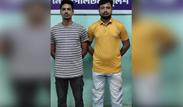 নগরীর দৌলতপুরের পাবলা খানপাড়া এলাকায় মহানগর গোয়েন্দা পুলিশের অভিযানে দুইজন চিহ্নিত সন্ত্রাসীকে গ্রেফতার করা হয়েছে। এ সময় তাদের কাছ থেকে বিদেশী পিস্তল, চারটি গুলির ভরা ম্যাগাজিন, সাত বোতল ফেন্সিডিল ও ৩৫০ পিস ইয়াবা উদ্ধার করা হয়। গ্রেফতারকৃতরা হলেন দৌলতপুরের পাবলা খানপাড়া এলাকার নূর ইসলাম গাজীর ছেলে রহমান গাজী (২৬) এবং দেয়ানা মোল্লাপাড়ার মোঃ আব্দুস সাত্তার এর ছেলে আবুল কালাম আজাদ (২৭)। নগর গোয়েন্দা পুলিশের পরিদর্শক (ওসি) মোঃ তৈমুর ইসলাম জানান, শুক্রবার রাতে গোপন সংবাদের ভিত্তিতে দৌলতপুরের ওই এলাকায় একটি অভিযান চালানো হয়। এই অভিযানে কুখ্যাত সন্ত্রাসী রহমান গাজী ও আবুল কালাম আজাদকে গ্রেফতার করা হয়। তাদের হেফাজত থেকে উদ্ধার করা হয় একটি বিদেশী পিস্তল, একটি ম্যাগাজিন, চার রাউন্ড গুলির বরাদ্দ, সাত বোতল ফেন্সিডিল ও ৩৫০ পিস ইয়াবা। এ ঘটনায় সংশ্লিষ্ট থানায় অস্ত্র ও মাদক আইনে পৃথক মামলা দায়েরের প্রস্তুতি নেওয়া হয়েছে। প্রাথমিক তদন্ত ও থানার রেকর্ড অনুযায়ী, রহমান গাজীর বিরুদ্ধে একটি এবং আবুল কালাম আজাদের বিরুদ্ধে আরও একটি মামলা রয়েছে।