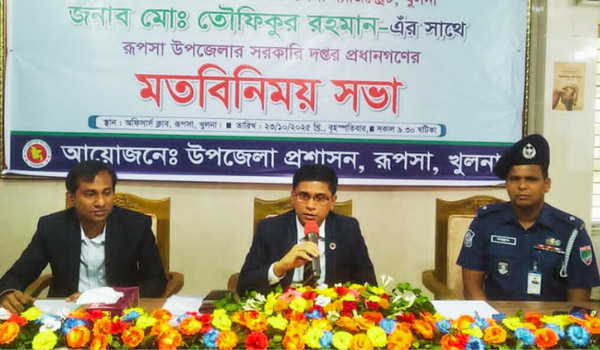 বৃহস্পতিবার সকালে রূপসা উপজেলা প্রশাসন আয়োজিত উপজেলা অফিসার্স ক্লাবে উপজেলার সরকারি দপ্তর প্রধানগণের সাথে এক জরুরি মতবিনিময় সভায় প্রধান অতিথির বক্তব্যে তিনি এ কথা বলেন। তিনি আরও জানিয়েছেন, সরকারি কর্মকর্তাদের উদ্দেশ্যে বলেছেন, নিজেদের সততা, দায়িত্ববোধ ও আন্তরিকতা দিয়ে জনগণের সেবায় এগিয়ে আসতে হবে। সবাইকে মনে রাখতে হবে যে, আমরা জনগণের কল্যাণে অবদানের জন্যই এই চাকরি করছি। তাই জাতি, ধর্ম, বর্ণ নির্বিশেষে সকলের উপকারের জন্য কাজ করে যেতে হবে।