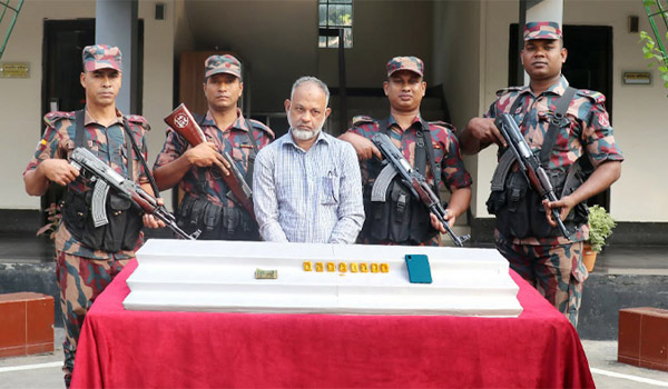 বিজিবি যশোর ব্যাটালিয়নের অধিনায়ক লে. কর্নেল সাইফুল্লাহ সিদ্দিকী জানান, সকালে শহরের মুড়লি মোড় এলাকায় অভিযান চালিয়ে এক ব্যক্তিকে আটক করে পুলিশ। তাঁর শরীরের বিভিন্ন অংশ পরীক্ষা করে কোমরে বিশেষ কায়দায় লুকানো অবস্থায় জব্দ করা হয় স্বর্ণের আটটি বার, যার মোট ওজন ১ কেজি ২০ গ্রাম, পাশাপাশি একটি স্বর্ণের আংটি ও একটি মোবাইল ফোন।