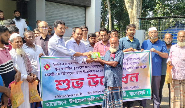 বাগেরহাটের চিতলমারীতে ৫৩০ জন প্রান্তিক ও ছোট কৃষককে বিনামূল্যে রাসায়নিক সার ও শীতকালীন বিভিন্ন সবজি বীজ বিতরণ করা হয়েছে। সোমবার (২৭ অক্টোবর) সকাল ১০টায় উপজেলা কৃষি অফিসের উদ্যোগে এ সুবিধা দেওয়া হয়। অনুষ্ঠানে উপজেলা নির্বাহী কর্মকর্তা (ইউএনও) ও উপজেলা কৃষি পুনর্বাসন বাস্তবায়ন কমিটির সভাপতি মোঃ সাজ্জাদ হোসেন প্রধান অতিথি হিসেবে উপস্থিত ছিলেন এবং এসব উপকরণ বিতরণ করেন।