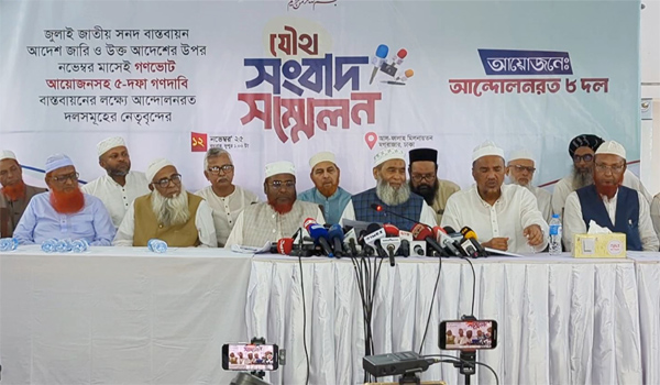 আটটি রাজনৈতিক দল নতুন কর্মসূচি ঘোষণা করেছে, যা জাতীয় সনদ বাস্তবায়নের আদেশ জারি এবং নভেম্বর মাসের মধ্যে এই আদেশের ওপর গণভোট আয়োজনের দাবিকে কেন্দ্র করে। আজ বৃহস্পতিবার (১৩ নভেম্বর) তারা জানিয়েছেন, ফ্যাসিবাদী শক্তির নাশকতা ও অপতৎপরতা রুখে দেওয়ার জন্য সর্বস্তরের জনশক্তিসহ দেশের বিভিন্ন স্থানেও রাজপথে তারা অবস্থান করবেন। এর মধ্যে উল্লেখ্য, ১৪ নভেম্বর (শুক্রবার) সরকারবিরোধী ৫ দফা দাবিসহ বিভিন্ন কর্মসূচি পালন করা হবে। আর ১৬ নভেম্বর (রোববার) দলগুলোর শীর্ষ নেতাদের মধ্যে বৈঠক অনুষ্ঠিত হবে। এই বৈঠক বেলা ১১টায় আল-ফালাহ মিলনায়তনে হবে, যেখানে আলোচনা ও সিদ্ধান্তের পরে দুপুর ১২টা ৩০ মিনিটে সংবাদ সম্মেলন অনুষ্ঠিত হবে। তবে, যদি জনগণের দাবি মানা না হয়, তাহলে সংবাদ সম্মেলন থেকে ঘোষণা দেওয়া হবে যে, যমুনার সামনে প্রধান উপদেষ্টার কার্যালয়ের পাশে অনির্দিষ্টকালের জন্য ঘোষণা করা হবে অনড় অবস্থান কর্মসূচি।