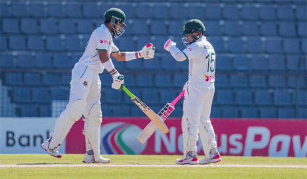দ্বিতীয় দিনের খেলা শেষ হওয়ার সময় বাংলাদেশ স্পষ্টভাবে এগিয়ে রয়েছি। বিশেষ করে, এখন তারা ১ উইকেটে ৩৩৮ রান সংগ্রহ করেছে। ব্যক্তিগত ১৬৯ ও ৮০ রান করে জয় ও মুমিনুল মাঠে নেমে আসেন। তবে, দুজন অবশ্যই নিজেদের ইনিংস বড় করতে পারেননি; জয় ফিরে যান ১৭১ রানে এবং মুমিনুল ৮২ রানে। এরপর মুশফিকুর রহিম মাত্র ২৩ রান করে আউট হন। দলের দায়িত্বভার নেয় বাংলাদেশি দলের অধিনায়ক শান্ত, যিনি লিটন দাসের সঙ্গে গড়েন ৯৮ রানের জুটি, যা দলের জন্য গুরুত্বপূর্ণ ছিল। এর আগে, মুশফিকের সঙ্গেও ৭৯ রানের একটি সফল জুটি গড়ে উঠেছিল। শান্ত দুর্দান্ত খেলেছেন, স্কোরবোর্ডে রান বাড়ানোর পাশাপাশি নিজের সেঞ্চুরিও তুলে ধরেছেন। যদিও ১০০ রান করেই আউট হয়েছেন, তবে তার সঙ্গে লিটন দাসের ফিফটি সুর তুলেছে দলের। লিটনও ৬০ রানে আউট হন। প্রথম চার ব্যাটারের ৮০ ছাড়ানো ইনিংস এবং আরও পাঁচজনের ফিফটি ছাড়ানো পারফরম্যান্সের সুবাদে, বাংলাদেশ তাদের ইনিংস ঘোষণা করে ৮ উইকেটে ৫৮৭ রান, ফলে বড় লিড হয় ৩০১ রানের।