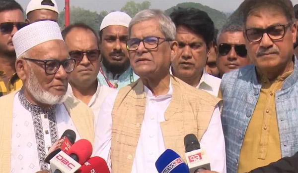 শনিবার (১৫ নভেম্বর) চাঁপাইনবাবগঞ্জে অনুষ্ঠিত ‘পদ্মা বাঁচাও গণসমাবেশ’-এর আগে মহানন্দা রাবার ড্যাম পরিদর্শন শেষে সাংবাদিকদের সঙ্গে আলোচনায় তিনি এ কথা বলেন। মির্জা ফখরুল আরও বলেন, আমাদের দেশের স্বার্থ আমাদেরই দেখতে হবে। যদি বিএনপি জনগণের ভোটে দায়িত্বে আসে, তখন তারা ফারাক্কা, তিস্তা ইস্যুসহ অন্যান্য গুরুত্বপূর্ণ বিষয়গুলোতে গুরুত্ব দিবে।