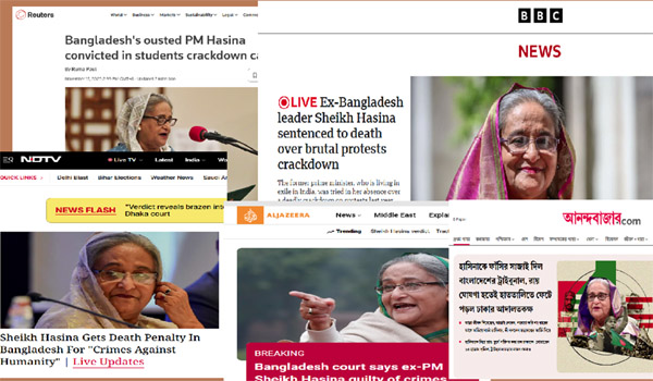 আন্তর্জাতিক গণমাধ্যমে শেখ হাসিনার ফাঁসির রায়ের খবর