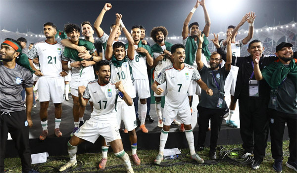 ফিলিপাইনের রেফারির শেষ বাঁশির অপেক্ষায় ছিল পুরো জাতীয় স্টেডিয়াম। যখন রেফারি বাঁশি বাজালেন, তখন দর্শকদের উল্লাসে মুখরিত হলো গ্যালারি। ফুটবলাররা তখন অনুপ্রেরণার ঝাঁকুনি পেয়েছেন। এই জয় বাংলাদেশের জন্য বিশেষ কারণ, তারা দীর্ঘ ২২ বছর পর ভারতের বিপক্ষে এই জয় অর্জন করতে সক্ষম হল। এর আগে ২০০৩ সালে সাফ চ্যাম্পিয়নশিপের সেমিফাইনালে মতিউর মুন্নার জোড়া গোলের মাধ্যমে বাংলাদেশ ভারতের ওপর জয় লাভ করেছিল। এবার,২০১-এরশিয় যুদ্ধের জয় এনে দিয়েছেন শেখ মোরসালিনের বিস্ময়কর গোল। ম্যাচের মাত্র ১২ মিনিটে বাংলাদেশের জন্য প্রথম গোলটি আসে, এবং তারা সেই লিড প্রায় ৮০ মিনিটের জন্য বজায় রাখতে সক্ষম হয়। এই জয় আরও গুরুত্বপূর্ণ কারণ, বাংলাদেশ হংকং ও নেপালের বিপক্ষে ম্যাচের শেষ মুহূর্তে গোল হজম করেছিল, যেখানে রক্ষণ বা গোলরক্ষকের ভুলে হারতে বসেছিল। কিন্তু আজ, সেই ঘটনার পুনরাবৃত্তি হয়নি। ভারত দ্বিতীয়ার্ধে আরও আক্রমণ চালিয়েও গোল করতে পারেনি। দ্বিতীয় হাফের শুরু থেকে ভারতের আক্রমণ তীব্র হলেও বাংলাদেশের রক্ষণ আর গোলরক্ষকের দৃঢ়তায় তারা প্রতিরোধ গড়ে তুলেছে। ৬৫ মিনিটে বাংলাদেশের এক কৌশলী Counter Attack থেকে গোলের সুযোগ তৈরি হয়, তবে সে এগিয়ে যেতে পারেনি। ৭৮ মিনিটে শাকিল আহাদ টপ বলতে বললেন, দূরপাল্লার শট দিলেও ভারতীয় গোলরক্ষক সান্ধু দুর্দান্ত সেভ করেন। ৯২ মিনিটে ভারত সমতা ফেরানোর জন্য মরিয়া ছিল, কিন্তু বাংলাদেশের মানসিকতা আর মিতুল মারমার সাফল্যে তারা সফল হয়নি। পরে, ৯৬ মিনিটে বাংলাদেশের নিরাপদ অবস্থানে থাকার ফলে তারা জয় নিশ্চিত করে। সন্ধ্যার ম্যাচটি শুরু থেকেই ছিল উত্তেজনাপূর্ণ, বাংলাদেশ জয়ের জন্য মুখিয়ে ছিল। প্রথমার্ধে বাংলাদেশ যথাসাধ্য আক্রমণ করে ভারতের রক্ষণকে চাপে রাখে। খেলায় একমাত্র গোলটি আসে ১১ মিনিটে, মাঝমাঠ থেকে রাকিব হোসেন তার দ্রুততার মাধ্যমে দুই ডিফেন্ডারকে কাটিয়ে তুলে বল পাঠান শেখ মোরসালিনের দিকে। মোরসালিন দ্রুতই গোল করেন, যা পুরো দলের মনোবল বাড়ায়। এরপর, রাকিব আরও একটি সুযোগ তৈরি করেন, তবে ভারতীয় গোলরক্ষক গুরপ্রীত সিং সান্ধু বল প্রতিরোধ করেন। ৩১ মিনিটে পরিস্থিতির অবনতি হয়, যখন ভারতীয় খেলোয়াড়রা গোলের কাছাকাছি পৌঁছে যাওয়ার সময়, গোলপোস্টের কাছে বল বাইরে চলে যায়। এরপর ৩৫ মিনিটে খেলার উত্তেজনা ছড়িয়ে পড়ে, দুদলের মধ্যে হাতাহাতি ও ঝগড়া শুরু হয়। অর্ধেকের শেষ দিকে, হামজা চৌধুরী গুরুত্বপূর্ণ এক ডিফেন্সিভ ক্লিয়ারেন্স করেন, যাতে বাংলাদেশের পক্ষ থেকে উত্তেজনা নিয়ন্ত্রিত হয়। প্রথমার্ধের শেষের দিকে, হামজার এক সেরা শট ভারতীয় রক্ষণের অদম্য প্রতিরোধের কারণে গোলের বাইরে চলে যায়। এই জয় বাংলাদেশের ফুটবল প্রেমীদের জন্য নতুন 