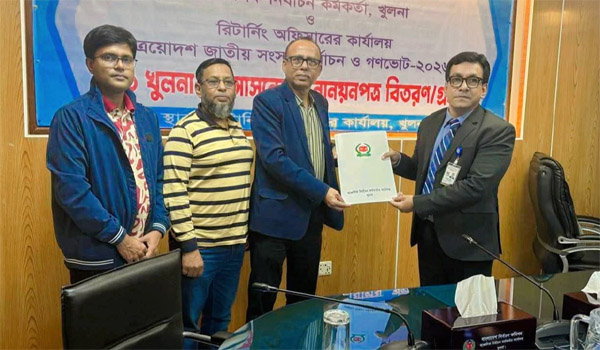 আসন্ন ত্রয়োদশ জাতীয় সংসদ নির্বাচনকে সামনে রেখে খুলনায় মনোনয়নপত্র বিতরণের কার্যক্রম শুরু হয়েছে। জেলা নির্বাচন অফিসের সূত্রে জানা গেছে, এখন পর্যন্ত খুলনার চারটি সংসদীয় আসনে মোট ৭ জন প্রার্থী মনোনয়নপত্র সংগ্রহ করেছেন। সোমবার (১৫ ডিসেম্বর) খুলনা জেলা রিটার্নিং কার্যালয় থেকে প্রার্থীরা বা তাদের প্রতিনিধিরা এসব মনোনয়নপত্র গ্রহণ করেছেন।