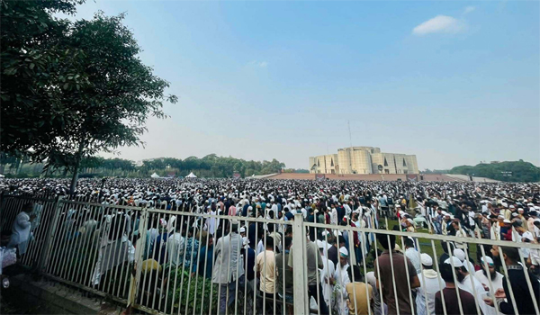 ইনকিলাব মঞ্চের মুখপাত্র শহীদ ওসমান হাদির জানাজা অনুষ্ঠিত হয়েছে, যেখানে লাখো মানুষ অংশগ্রহণ করেন। তার বড় ভাই আবু বকর সিদ্দিক জানাজা পড়ান। শনিবার (২০ ডিসেম্বর) দুপুর আড়াইটার সময় সংসদ ভবনের দক্ষিণ প্লাজায় এই জানাজা অনুষ্ঠিত হয়। এই সময় প্রধান উপদেষ্টা ড. মুহাম্মদ ইউনূসসহ উপদেষ্টা পরিষদের সদস্যরা উপস্থিত ছিলেন। দেশের তিন বাহিনী বাহিনীর প্রধানরাও জানাজায় অংশ নেন। পাশাপাশি বিএনপি, জামায়াতে ইসলামীর নেতৃবৃন্দ ও অন্যান্য দলের নেতাকর্মীও উপস্থিত ছিলেন। সকাল থেকে বিভিন্ন শ্রেণী-পেশার মানুষ মানিক মিয়া অ্যাভিনিউয়ে জড়ো হতে শুরু করেন। সকাল সাড়ে ১০টায় আইনশৃঙ্খলা বাহিনী সাধারণ মানুষকে দক্ষিণ প্লাজায় প্রবেশের অনুমতি দেয়। আর্চওয়ে গেট দিয়ে ছাত্র-জনতা নিরাপদে প্রবেশ করেন। নিরাপত্তা ব্যবস্থা কড়াকড়ি থাকায় প্রতিটি প্রবেশপথে সতর্ক অবস্থান নেয় পুলিশ। দুপুরের দিকে জনস্রোত খামারবাড়ি থেকে আসাদ গেট পর্যন্ত পুরো এলাকা ঢেকে যায়। দেশের বিভিন্ন জেলা থেকেও মানুষ জানাজায় উপস্থিত হন। তারা বলছেন, এ জনসভা সর্বকালের সবচেয়ে বিশাল গণসমাবেশ। দুপুর পৌনে ১১টার দিকে শহীদ সোহরাওয়ার্দী মেডিকেল কলেজ হাসপাতালের মর্গে শহীদ হাদির মরদেহের ময়নাতদন্ত সম্পন্ন হয়। এরপর মরদেহ কীভাবে রাখা হবে, তা সিদ্ধান্তের জন্য জাতীয় হৃদরোগ ইনস্টিটিউটে নিয়ে যাওয়া হয়। মরদেহের গোসলের পরে দুপুর ২টার দিকে এটি সংসদ ভবনের দক্ষিণ প্লাজায় নেওয়া হয়। বাংলাদেশ মেডিকেল কলেজ (ঢামেক) হাসপাতালের নিউরোসার্জারি বিভাগের চিকিৎসক ও ন্যাশনাল হেলথ অ্যালায়েন্সের সদস্য সচিব ডা. মো. আব্দুল আহাদ জানিয়েছেন, শহীদ হাদির দাফন কার্যক্রম দেশের ইতিহাসে উল্লেখযোগ্য। তাকে জাতীয় কবি কাজী নজরুল ইসলামের কবরে সমাধিস্থ করা হবে। ২০১৯ সালের ১২ ডিসেম্বর রাজধানীর বিজয়নগর এলাকায় গণসংযোগ করতে গিয়ে চলন্ত মোটরসাইকেল থেকে হামলার শিকার হন হাদি। গুলিতে তার মাথা গুরুতর আঘাত পায়। প্রথমে ঢাকা মেট্রো মেডিকেল কলেজ হাসপাতালে রোগীকে নিয়ে যাওয়া হয়। পরে উন্নত চিকিৎসার জন্য তাকে সুস্থভাবে সিঙ্গাপুরের জেনারেল হাসপাতালে স্থানান্তর করা হয়। সেখানে চিকিৎসাধীন অবস্থায় ১৮ ডিসেম্বর রাতে তিনি শেষ নিঃশ্বাস ত্যাগ করেন। তার মরদেহ বাংলাদেশ সময় ১৯ ডিসেম্বর দুপুর ২টা ৩ মিনিটে বিমান বাংলাদেশ এয়ারলাইন্সের ফ্লাইটে চাঙ্গি আন্তর্জাতিক বিমানবন্দর ত্যাগ করে। সন্ধ্যা ৫টা ৪৮ মিনিটে হাদির মরদেহ বহনকারী বিমানের ফ্লাইট হযরত শাহজালাল আন্তর্জাতিক বিমানবন্দরে অবতরণ করে।