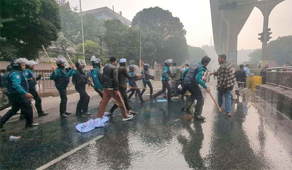 রোববার (৪ জানুয়ারি) বেলা ১২টার দিকে দেখা যায়, আন্দোলনকারীরা সড়ক অবরোধ করে অবস্থান করছেন। পুলিশ তাঁদের সরানোর জন্য এগিয়ে গেলে উভয় পক্ষের মাঝে ধাওয়া-পাল্টা ধাওয়া ও ইটপাটকেল নিক্ষেপের ঘটনা ঘটে। এলাকায় আতঙ্ক ছড়িয়ে পড়ে এবং আশপাশের দোকানপাট বন্ধ হয়ে যায়। যানচলাচল বন্ধ হয়ে যায় ও পরিস্থিতি নিয়ন্ত্রণে আনতে পুলিশ সাউন্ড গ্রেনেড ও টিয়ার শেল ব্যবহার করে। পরে আন্দোলনকারীরা বাংলামোটর মোড়ের দিকে ফিরে যান এবং সড়কে আগুন জ্বালিয়ে প্রতিবাদ জোড়ালি করে।