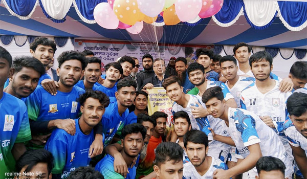 খুলনা বিভাগীয় পর্যায়ের আন্তর্জাতিক মানের আন্তঃকলেজ ফুটবল টুর্নামেন্ট-২০২৫ এর আনুষ্ঠানিক উদ্বোধন সম্পন্ন হয়েছে। রোববার সকাল ১০টায় খুলনা বিভাগীয় মহিলা ক্রীড়া কমপ্লেক্সের মাঠে এই গুরুত্বপূর্ণ অনুষ্ঠানে বিভিন্ন পর্যায়ের অতিথিরা অংশ নেন। অনুষ্ঠানের প্রধান অতিথি হিসেবে উপস্থিত ছিলেন অতিরিক্ত বিভাগীয় কমিশনার (শিক্ষা ও আইসিটি) মোহাম্মদ নাজমুল হক। তিনি বেলুন ও ফেস্টুন উড়িয়ে দেন এবং এক সুন্দর উৎসবমুখর পরিবেশে এই টুর্নামেন্টের উদ্বোধন করেন। এ সময় অনুষ্ঠানে বিশেষ অতিথি হিসেবে উপস্থিত ছিলেন উপ-পরিচালক (জাতীয় ক্রীড়া পরিষদ, খুলনা বিভাগ) প্রকৌশলী মোঃ আওলাদ হোসেন। ক্লাবের সুস্থ ও স্পোর্টসময় পরিবেশ নিশ্চিত করতে খুলনা জেলা ক্রীড়া অফিসার মোঃ আলীমুজ্জামান সভাপতিত্ব করেন। উদ্বোধনী খেলায় চুড়াডাঙ্গা সরকারি কলেজ ২-১ গোলে খুলনা পাবলিক কলেজকে হারিয়ে জয় লাভ করে। দ্বিতীয় খেলায় ঝিনেদা রাইচরণ তারিনী চরণ ডিগ্রি কলেজ ১-০ গোলে ডুমুরিয়া কলেজকে পরাস্ত করে। তৃতীয় খেলায় চুয়াডাঙ্গা ডিগ্রি কলেজ ৫-১ গোলে উপশহর কলেজ যশোরকে হারায়। অপর দিকে, চতুর্থ খেলায় সাতক্ষীরা সরকারি কলেজ ১-০ গোলে আমঝুপি রাজনগর বারাদি কলেজ, মেহেরপুরকে পরাজিত করে। এই টুর্নামেন্টের মাধ্যমে যুবসমাজের মধ্যে সুস্থ প্রতিযোগিতার মনোভাব বৃদ্ধি পাওয়ার আশা প্রকাশ করা হচ্ছে।