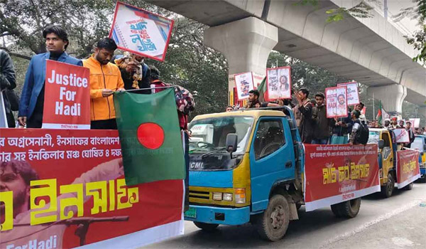 শহীদ শরিফ ওসমান হাদির হত্যার বিচারসহ ইনকিলাব মঞ্চের চার দফা দাবির সমর্থনে শাহবাগ থেকে ‘মার্চ ফর ইনসাফ’ নামে এক শান্তিপূর্ণ পথযাত্রা শুরু হয়েছে। এই উদ্যোগের মাধ্যমে নেতাকর্মীরা তাদের একগুচ্ছ গুরুত্বপূর্ণ দাবি সামনে আনছেন।