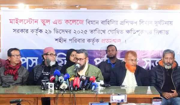 সংবাদ সম্মেলনে ক্ষতিগ্রস্ত পরিবারের সদস্যরা বলেন, ২০২১ থেকে ২০২৪ সালের মধ্যে বিমানবাহিনীর বাজেটে দুর্নীতি না থাকলে অভ্যন্তরীণ রক্ষণাবেক্ষণ ও আধুনিক প্রশিক্ষণ সম্ভব হতো। তাদের দাবির পক্ষে, দুর্নীতির কারণেই ৩৬ জন জীবন হারিয়েছেন এবং ১৭২ জন আহত হয়েছে। তারা বিমান নির্মাণের অনিয়মের কারণেও হতাহতের সংখ্যা বাড়ার জন্য দায়ী করেন। উপস্থিত পরিবারগুলো কান্নায় ভেঙে পড়েন এবং জানান, দুর্ঘটনার দিন দুপুর ১:১২ মিনিটে বিমানটি বাতাসে আছড়ে পড়লে শিশুরা, শিক্ষক ও অভিভাবকেরা দগ্ধ ও বিভক্ত মরদেহ উদ্ধার হয়। এ ধরনের ভয়ঙ্কর দুর্ঘটনা ইতিহাসে বিরল।