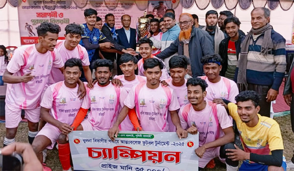 খুলনা বিভাগীয় পর্যায়ের আন্তঃকলেজ ফুটবল টুর্নামেন্টে চ্যাম্পিয়ন হয়েছে সাকিনা আজাহার টেকনিক্যাল কলেজ, বাগেরহাট। খুলনা বিভাগীয় মহিলা ক্রীড়া কমপ্লেক্স মাঠে গতকাল শুক্রবার বিকেল তিনটায় অনুষ্ঠিত হয় ফাইনাল ম্যাচটি। এই খেলায় সাকিনা আজাহার টেকনিক্যাল কলেজ, বাগেরহাট, মাগুরা আদর্শ কলেজকে ২-০ গোলে হারিয়ে চ্যাম্পিয়নের গৌরব অর্জন করে। ম্যাচের অন্যতম সেরা খেলোয়াড় নির্বাচিত হন চ্যাম্পিয়ন দলের ১০ নম্বর জার্সিধারী সেকেন্দার আলী আল আমিন। এছাড়া, টুর্নামেন্টের সর্বোচ্চ গোলদাতা হন মাগুরার রাব্বি, যিনি ৯ নম্বর জার্সি পরেছিলেন।