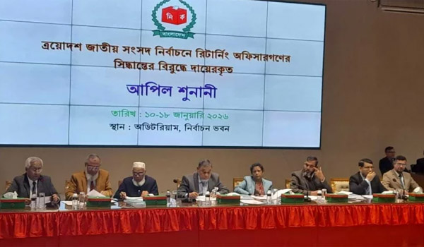 তৃতীয় দিনের মতোই গত শনিবার (১০ জানুয়ারি) নির্বাচনের আপিল শুনানি শুরু করেছে নির্বাচন কমিশন (ইসি)। এই দিন সকালে রাজধানীর আগারগাঁওয়ে নির্বাচন ভবনের অডিটরিয়ামে মোট তিন ঘণ্টায় ৩৬ জন প্রার্থীর আপিল নিষ্পত্তি করা হয়। এই শুনানি প্রধান নির্বাচন কমিশনার (সিইসি) এএমএম নাসির উদ্দিনের সভাপতিত্বে অনুষ্ঠিত হয়, যেখানে অন্যান্য কমিশনারগণও উপস্থিত ছিলেন। সকাল ১০টা থেকে দুপুর ১টা পর্যন্ত চলা এই আপিলের মধ্যে, ২৬ জনের মনোনয়ন বৈধ ঘোষণা করা হয়, অন্যদিকে ৬ জনের আপিল খারিজ করা হয়। এছাড়াও, চার জন প্রার্থীর আপিলের সিদ্ধান্তের জন্য আরও কিছু প্রমাণপত্র দাখিলের নির্দেশ দেওয়া হয়েছে।
