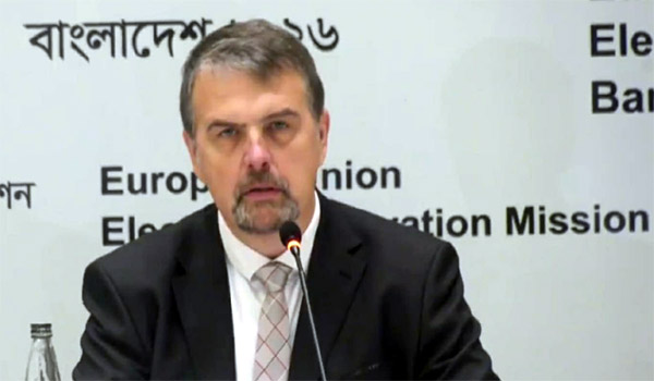 শনিবার (১৪ ফেব্রুয়ারি) রাজধানীর একটি হোটেলে অনুষ্ঠিত এক বিশেষ সংবাদ সম্মেলনে ইইউয়ের নির্বাচনী পর্যবেক্ষণ মিশনের প্রধান ইভার্স ইজাবস এ সব কথা জানান। তিনি বলেন, এই নির্বাচনের মাধ্যমে বিশ্বাসযোগ্যতা ও স্বচ্ছতার ভিত্তিতে গণতান্ত্রিক প্রক্রিয়া এগিয়ে নেওয়া সম্ভব হয়েছে। নির্বাচন প্রতিযোগিতামূলক ও আন্তর্জাতিক মানের হওয়ার জন্য নির্বাচন কমিশন নিরলস পরিশ্রম করেছে। তারা নিজেরা স্বাধীন ও স্বচ্ছভাবে গোষ্ঠী এবং জনতার আস্থার যোগ্যতা অর্জন করতে সক্ষম হয়েছে।