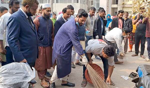 বাগেরহাটে সংসদ সদস্যরা ঝাড়ু হাতে পরিষ্কার করেছেন গুরুত্বপূর্ণ স্থানগুলো