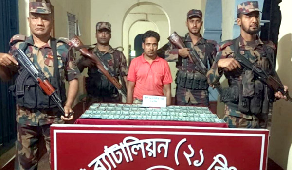 খুলনা: শার্শা উপজেলার কায়বা সীমান্ত এলাকায় খুলনা ২১ বিজিবি ব্যাটালিয়নের একটি বিশেষ অভিযানে ৮৬টি ৫০০ টাকার জাল নোট এবং ১০০ গ্রাম ক্রিস্টাল মেথ আইসসহ একজনকে গ্রেফতার করা হয়েছে। উদ্ধার হওয়া ৮৬টি নোটের সমমূল্য প্রায় ৪৩,০০০ টাকার কাছাকাছি।