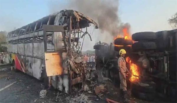 অন্ধ্রপ্রদেশের মার্কাপুরাম এলাকায় বৃহস্পতিবার ভোরে বাস ও টিপার লরির সংঘর্ষের পর বাসে আগুন লেগে অন্তত ১৩ জন নিহত হয়েছেন। দুর্ঘটনাটি সকাল প্রায় ছয়টার দিকে ঘটে বলে জানায় স্থানীয় প্রশাসন।