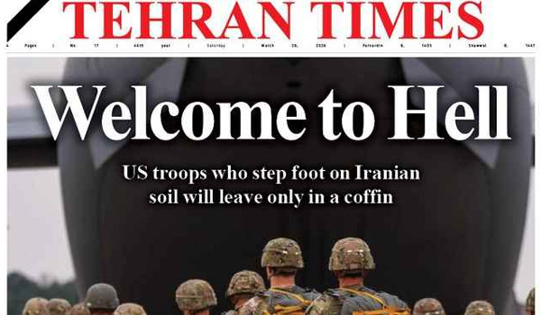 ইরানের ইংরেজি দৈনিক তেহরান টাইমস শনিবার প্রথম পাতায় বিশাল শিরোনাম ছাপিয়ে ওয়াশিংটনকে সরাসরি সতর্কবার্তা দিয়েছে—’ওয়েলকাম টু হেল’। দৈনিকটি জানিয়েছে, যদি কোনো মার্কিন সেনা ইরানের মাটিতে পা রাখে, তারা ‘শুধু কাফিনেই ফিরবে’।