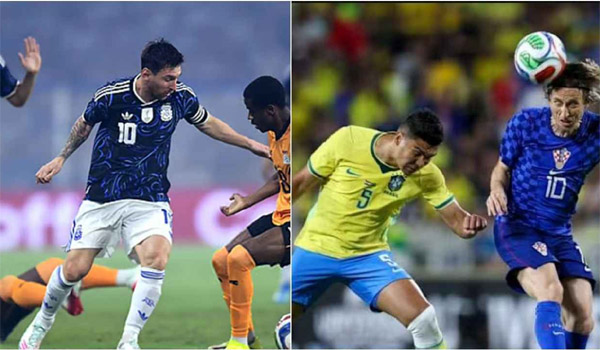 বিশ্বকাপের শিরোপা ধরে রাখার জন্য প্রস্তুতি শুরু করার আগে ঘরের মাঠে দুর্দান্ত ফিরতি ছন্দে ফিরেছে আর্জেন্টিনা। লিওনেল মেসির নেতৃত্বে তারা জাম্বিয়া দলের বিরুদ্ধে ৫-০ গোলের বিশাল জয় অর্জন করে। এই জেতা দলের আত্মবিশ্বাস আরও গাঢ় করে তুলেছে। পাশাপাশি ব্রাজিলও নিজেদের প্রস্তুতি শেষ করেছে বড় জয় দিয়ে। অরল্যান্ডোর ক্যাম্পিং স্টেডিয়ামে, বিশ্বকাপের চূড়ান্ত স্কোয়াড ঘোষণার আগ মুহূর্তে ব্রাজিল ৩-১ গোলে ক্রোয়েশিয়াকে হারিয়েছে।ট্রান্সমিশনের এই প্রীতি ম্যাচে দুদলই আক্রমণাত্মক ফুটবল খেলেছে। প্রথমে বেশ কয়েকটি আক্রমণে এগিয়ে যায় আর্জেন্টিনা। ৩৫ মিনিটে প্রথম গোল করেন হুলিয়ান আলভারেজ, তার কিছু সময় পরেই দলের অধিনায়ক লিওনেল মেসি গোল করে এগিয়ে দেন স্বাগতিকদের। বিরতির আগে ৫০তম মিনিটে নিকোলাস ওতামেন্দি পেনাল্টি থেকে ব্যবধান বাড়ান। দ্বিতীয়ার্ধের শুরুতেই জাম্বিয়ার ডিফেন্ডার ডমিনিক চান্দার নিজের পোস্টে আত্মঘাতী গোল করে স্কোরলাইন ৪-০ নির্ধারণ করেন। যোগ করা সময়ে (৯৩ মিনিটে) ভ্যালেন্টিন বারকো গোল করলে, ম্যাচের ফলাফল ৫-০-এ রূপ নেয়। কিছু দিন আগে মৌরিতানিয়ার বিরুদ্ধে ম্যাচে মেসি বেঞ্চে ছিলেন, ফলে দলের পারফরম্যান্স প্রত্যাশিত ছিল না। তবে দ্বিতীয়ার্ধে শরিক হয়ে আর্জেন্টিনা জয় ধরে রাখে। এই জয়ে তারা প্রতিযোগিতামূলক প্রস্তুতিটা ভালোভাবে সম্পন্ন করেছে। এটি ২০২৬ বিশ্বকাপের শুরুতে আর্জেন্টিনার ঘরের মাঠে শেষ প্রীতি ম্যাচ ছিল। চলতি মার্চ মাসে তারা দুইটি ম্যাচেই জয় পেয়েছে, যা দলের মনোবল আরও বাড়িয়েছে। অন্যদিকে, কাতার বিশ্বকাপের কোয়ার্টার ফাইনালে টাইbralেকের পর ব্রাজিলের ব্যাথা কিছুটা কমে এসেছে। অরল্যান্ডোয় অনুষ্ঠিত প্রীতি ম্যাচে তারা ক্রোয়েশিয়াকে ৩-১ গোলে হারিয়ে নিজেদের শক্তি আবারও দেখিয়েছে। গত সপ্তাহে ফ্রান্সের কাছে হারের ধাক্কা সামলে, কোচ কার্লো আনচেলত্তির দল এবার নিজেদের আসল রূপ দেখিয়েছে। বিশ্বকাপের জন্য তাদের প্রস্তুতির শেষ ম্যাচ এটি। এই ম্যাচে ব্রাজিলের জন্য জয়ের মূল নায়ক হয়েছেন দানিলো, ইগর থিয়াগো ও গ্যাব্রিয়েল মার্টিনেল্লি। প্রথমার্ধের যোগ করা সময়ে দ্রুত প্রত্তাপরে এগিয়ে যায় ব্রাজিল, ভিনিসিয়ুস জুনিয়র বাঁকানো দৌড়ে বল পেয়ে জোরালো শটে গোল করেন দানিলো। বিরতির পরে ক্রোয়েশিয়া চাপ বাড়ায় এবং ৮৩ মিনিটে লোভরো মায়েরের গোলে সমতা ফেরে। তবে ম্যাচের শেষ ভাগে বদলি ফরোয়ার্ড এন্দ্রিক গুরুত্বপূর্ণ ভূমিকা রাখেন। তিনি ফাউলের শিকার হয়ে পেনাল্টি পান, এবং ৮৮ মিনিটে সেই পেনাল্টি থেকে গোল করে ব্রাজিলকে আবারও লিড দেন। যোগ করা সময়ে গ্যাব্রিয়েল মার্টিনেল্লি এন্দ্রিকের অ্যাসিস্টে আরও একটি গোল করেন, ব্যবধান আ