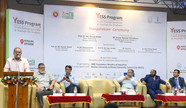 বিশ্ববিদ্যালয়ের শিক্ষার্থীদের উদ্যোক্তা হিসেবে উদ্বুদ্ধকরণ ও সৃজনশীল ব্যবসা ধারণা ও স্টার্টআপ বিকাশে ব্যাংকসহ বিকল্প অর্থায়ন নিয়ে ‘ইউথ এন্টারপ্রেনরশিপ অ্যান্ড স্টার্টআপ ফর স্টুডেন্টস’ শীর্ষক একটি কর্মশালা রোববার (৫ এপ্রিল) খুলনা বিশ্ববিদ্যালয়ে অনুষ্ঠিত হয়েছে। শিল্প মন্ত্রণালয়াধীন এসএমই ফাউন্ডেশন এই প্রোগ্রাম আয়োজন করে এবং খুলনা বিশ্ববিদ্যালয় ও খুলনা ইউনিভার্সিটি ক্যারিয়ার ক্লাব এতে সহযোগিতা করেছে।