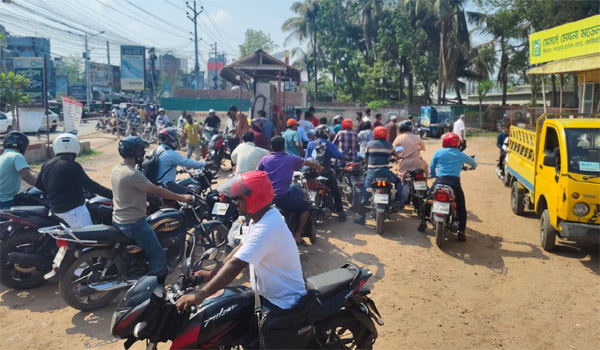 সরেজমিন পরিস্থিতি দেখলে বোঝা যায়, সকাল ১১টায় তেল দেওয়া থাকলেও ভোর থেকেই মোটরসাইকেলের সারি কিলোমিটার ছুঁই ছুঁই করে। এদের এক বড় অংশ পেশাদারভাবে তেল সংগ্রহ করে — একবার তেল নিয়ে দ্রুত কোথাও ড্রামে ঢেলে পড়ে আবার একই বা অন্য পাম্পে ফিরে এসে পোশাক পরিবর্তন করে লাইনে দাঁড়ায়। ফলে একই এক ব্যক্তিই দিনে একাধিকবার তেল নেয়। পাম্পের কর্মীরা অভিযোগ করছেন, অনেকেই একদিনে ১০ বার পর্যন্ত তেল নিচ্ছে; এতে সাধারণ চালকদের জন্য তেল পাওয়া আরও কঠিন হয়ে পড়ছে।