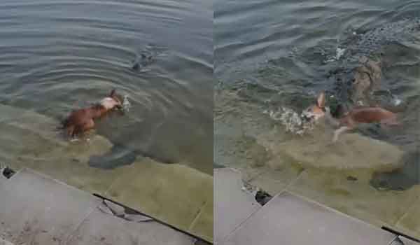 বাগেরহাটের ঐতিহ্যবাহী খানজাহান আলী (রহ.) মাজারে সংলগ্ন দিঘির প্রধান ঘাট থেকে এক কুকুরকে কুমির ধরে নিয়ে যাওয়ার ঘটনা ঘটেছে। বুধবার (০৮ এপ্রিল) বিকেলে এ দৃশ্যের ভিডিও সামাজিক যোগাযোগমাধ্যমে ছড়িয়ে পড়লে দেশজুড়ে সরগরমি শুরু হয় এবং ঘটনার真তা নিয়ে বিতর্ক সৃষ্টি হয়।