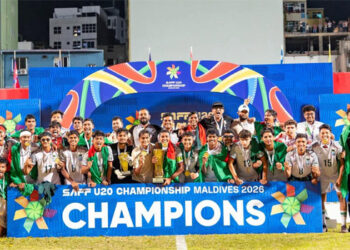 Read moreDetailsসাফ অনূর্ধ্ব-২০ চ্যাম্পিয়নশিপ জয়ে ইতিহাস গড়া বাংলাদেশ যুবদল দেশে ফিরছে। তাদের সফলতা উদযাপন করতে বাংলাদেশ ফুটবল ফেডারেশন (বাফুফে) বর্ণাঢ্য শোভাযাত্রা...