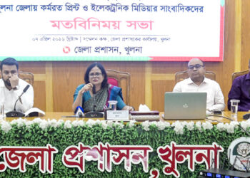 Read moreDetailsখুলনার নবাগত জেলা প্রশাসক হুরে জান্নাত গতকাল মঙ্গলবার তাঁর কার্যালয়ে সাংবাদিকদের সঙ্গে এক গুরুত্বপূর্ণ মতবিনিময় সভা অনুষ্ঠিত হয়। এই সভায়...